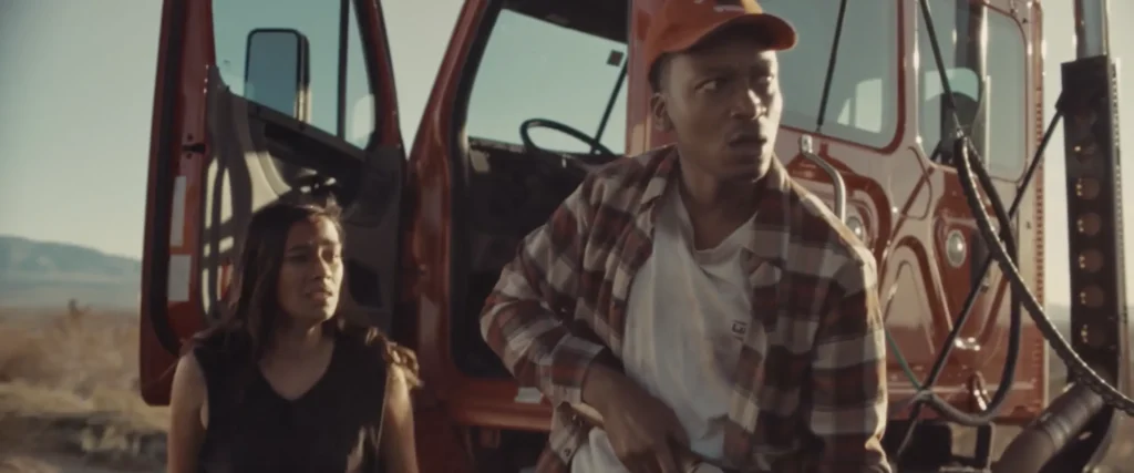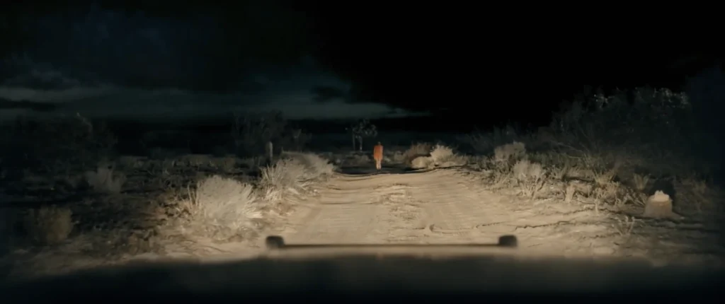 Set against vast desert roads and isolated towns, the film reimagines familiar road-movie iconography as hostile terrain. Gas stations, motels, and endless stretches of asphalt feel less like pit stops and more like pressure points. The landscape itself becomes complicit, watching silently as danger tightens. This is a world where distance doesn’t equal safety — it amplifies vulnerability.